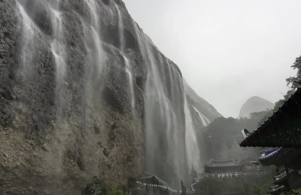 특히 마이산 탑사 옆은 비가 많이 오면 폭포가 쏟아져내려 장관을 이루는데 이를 도깨비폭포라고 부릅니다.
