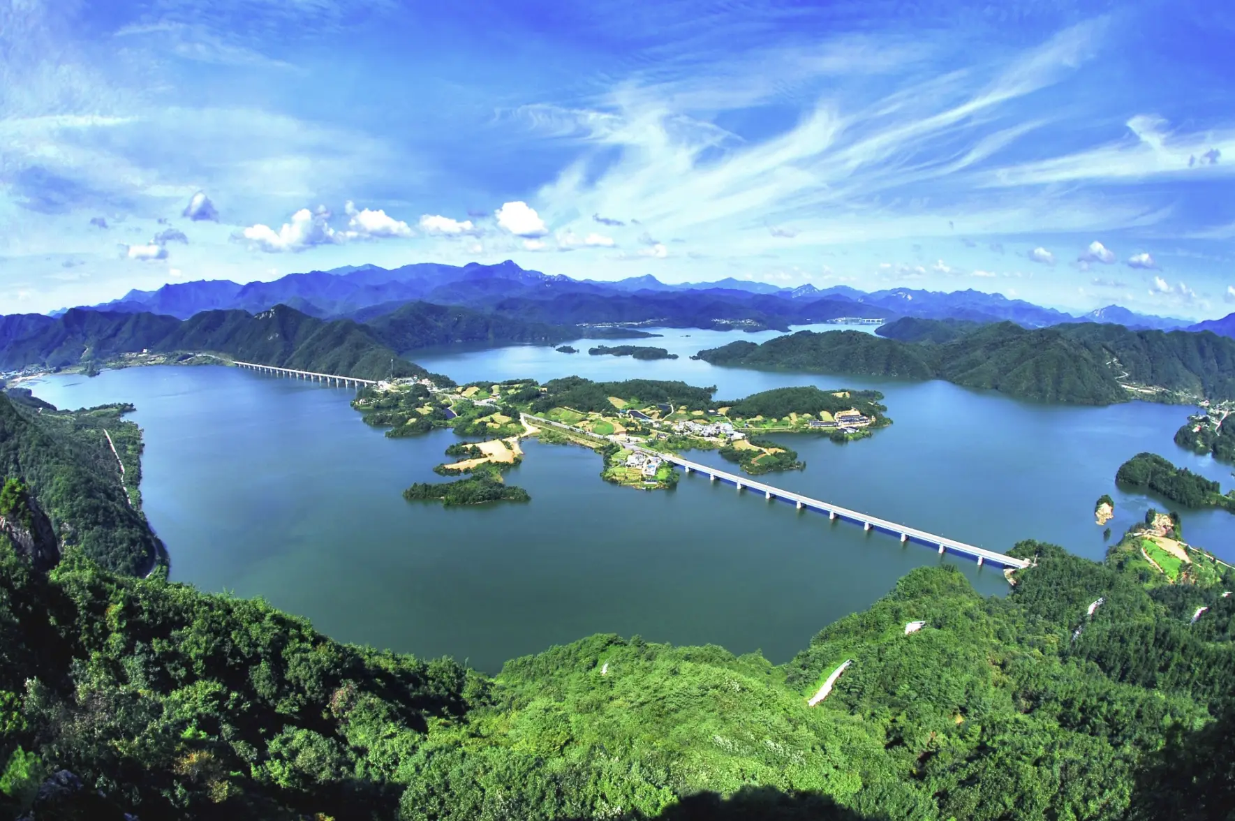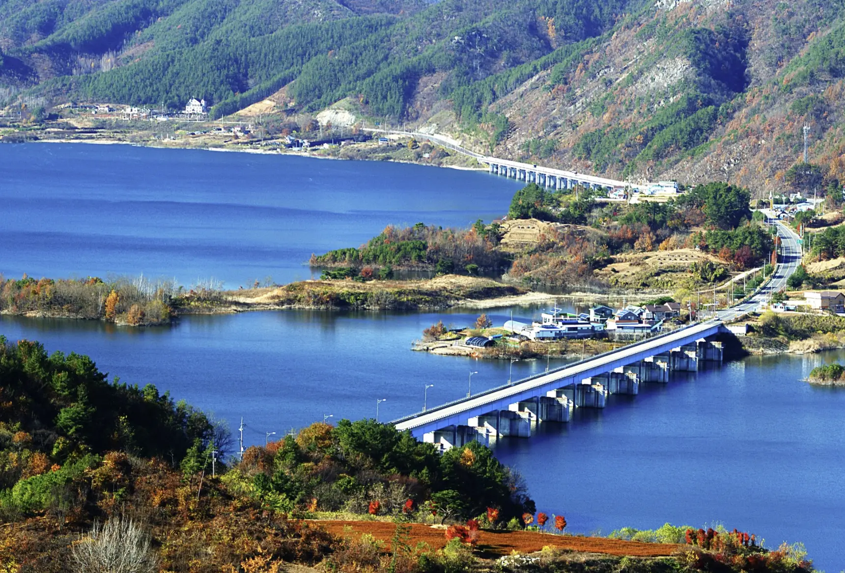 다목적 댐인 용담댐이 건설되면서 인공 호수인 용담호가 생겼습니다. 용담댐에 담수가 시작되면서 용담호는 진안군에서 빼놓을 수 없는 관광명소가 되었는데요, 특히나 용담호는 교량으로 댐 일주도로가 연결되어 있기 때문에 관광지로 사랑받는 명소가 되었습니다.